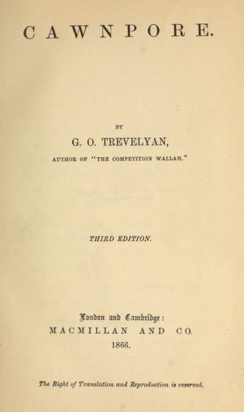 The Project Gutenberg EBook of Cawnpore, by G. O. Trevelyan This eBook is for the use of anyone anywhere in the United States and most other parts of the world at no cost and with almost no restrictions whatsoever. You may copy it, give it away or re-use it under the terms of the Project Gutenberg License included with this eBook or online at www.gutenberg.org. If you are not located in the United States, you'll have to check the laws of the country where you are located before using this ebook. Title: Cawnpore Author: G. O. Trevelyan Release Date: March 6, 2016 [EBook #51383] Language: English Character set encoding: ISO-8859-1 *** START OF THIS PROJECT GUTENBERG EBOOK CAWNPORE *** Produced by Brian Coe, Moti Ben-Ari and the Online Distributed Proofreading Team at http://www.pgdp.net (This file was produced from images generously made available by The Internet Archive/American Libraries.)