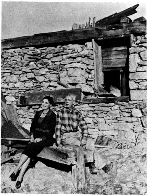 A Bachelor of Arts from Smith College, she later obtained a Master of Arts degree from the University of Denver, writing her thesis on Central City, Colorado. Her full-size Gulch of Gold is the definitive history of that well-known area, which includes Nevadaville, the scene of the accompanying photo. She is shown with Daniel K. Peterson who drew the maps and took most of the contemporary pictures for the new booklet on ghost towns.