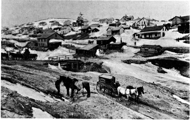When John H. Gregory found the first lode gold of Colorado in Gregory Gulch on May 6, 1859, other prospectors immediately pushed up all the tributary gulches. By the latter part of May a number of good claims had been staked on Quartz Hill above Nevada Creek. This creek joins Spring Creek at Central City and together they join Eureka Creek to make the mile-long Gregory Creek. It, in turn, joins the North Fork of Clear Creek at Black Hawk. The closest source of water for the mines on Quartz Hill was Nevada Creek. A camp sprang up immediately, and was named Nevada City.
