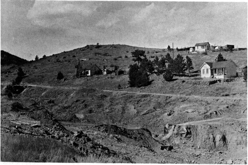 This view looks northeast across Nevada Creek to the main street, which continues at the right on down to Central City and Denver.