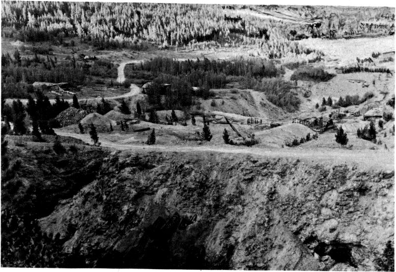 Alice was rich in gold—particularly placer gold. But oddly and uniquely, no one found these placers until long after other Clear Creek placers had been worked out. Apparently no prospector was thorough enough in his search on upper Fall River and its little tributary, Silver Creek, to make a strike during the placer excitements of 1859 and the early 1860’s, although some silver was uncovered. When rich gold was finally found in 1881, the discovery was made by a party working west from Yankee along the road that ran from Central City, the county seat of Gilpin County, past the side of Yankee Hill, down Silver Creek and Fall River, and on to Georgetown, county seat of Clear Creek County.