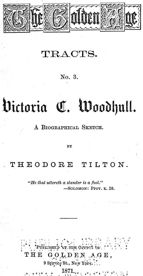 No. 3. "Victoria C. Woodhull." A Biographical Sketch. By Theodore Tilton. 36 pages. Price 10 cents.