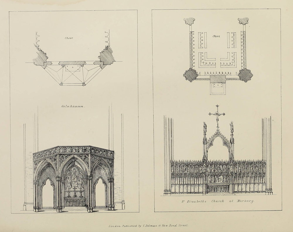 The plates illustrate many of the screens and rood lofts that are described in the text. They have been moved to the end of appropriate chapters, and hyperlinked to the corresponding text. They each bear the inscription "London Published by C Dolman 61 New Bond Street."