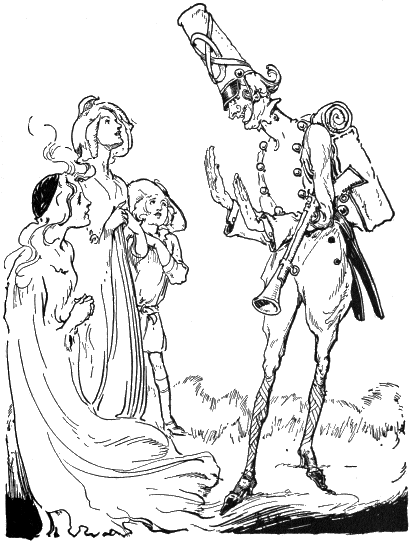 “I’ll go,” said Jo Cone, and Ann went on to the cottage of Jo Clock, who had an orchard of clock-trees. This man at first insisted that he would not join the army, but Queen Ann’s promise to make him a General finally won his consent.