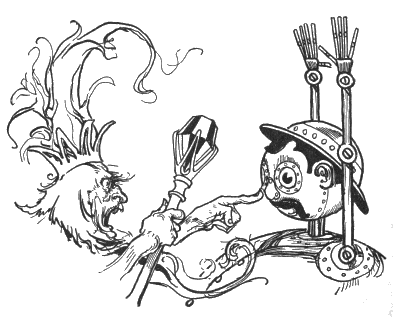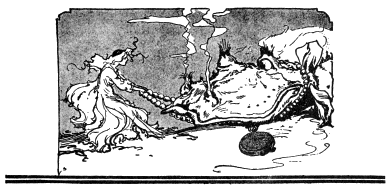 “Excuse me, please,” said Jo Cone. “I am a bad fighter. My good wife conquered me years ago, for she can fight better than I. Take her, Your Majesty, instead of me, and I’ll bless you for the favor.”