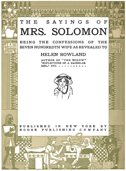 The Project Gutenberg EBook of The Sayings of Mrs. Solomon, by Helen Rowland