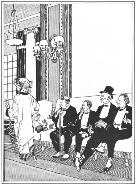 His wife is known within the gates, when she sitteth among the officers of her Club, by the fit of her gowns and her imported hats. He luncheth meagrely upon a sandwich that he may adorn her with fine jewels. He grumbleth not at the bills.