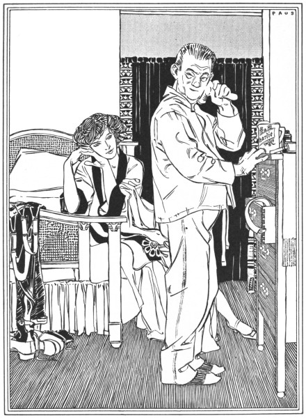 He riseth without calling and lifteth the ice from off the dumbwaiter. He starteth the kitchen range. He considereth his wife, and kisseth her occasionally.