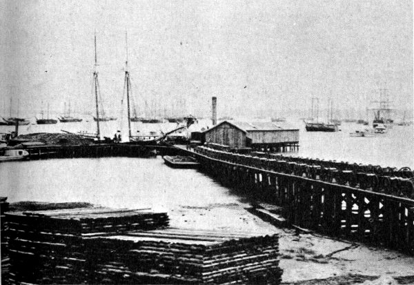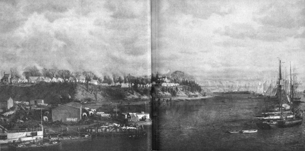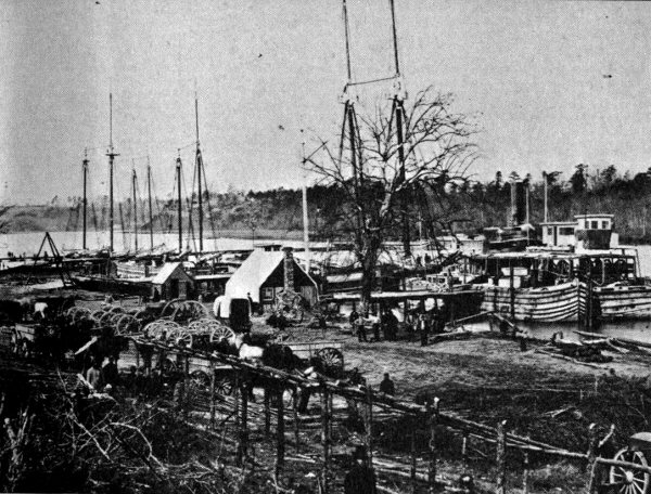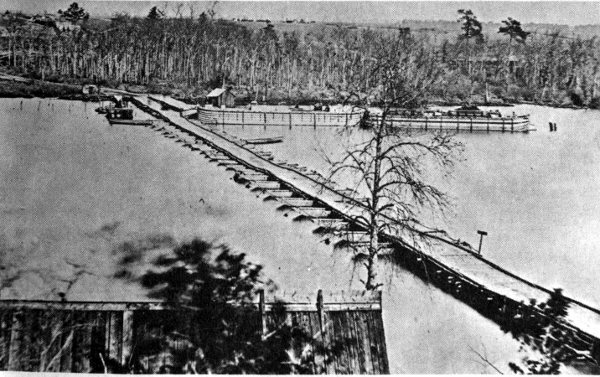 Pontoon bridge at Broadway Landing constructed by Federal soldiers in 1864.
