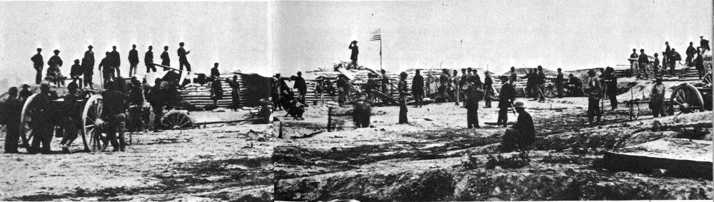 In the final year of the Civil War in the East, the fighting focused upon Petersburg, an important transportation center for Richmond and Lee’s army. For 10 bloody months of combat, both from behind prepared positions and along the main routes of supply, Lee’s ragged Confederates held the city (shown here from north of the Appomattox River) against Grant’s numerically superior Federals. On April 2-3, 1865, Lee was forced to abandon both Petersburg and Richmond. One week later, he surrendered the Army of Northern Virginia at Appomattox Court House, dooming the South’s bid for independent existence.