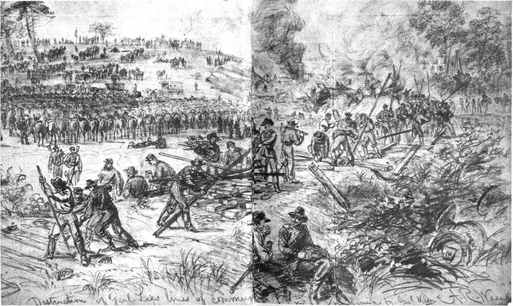 The Battle of the Wilderness, May 5-7, 1864, began what proved to be the start of the final campaign against the Army of Northern Virginia. Here Meade’s Army of the Potomac, numbering approximately 118,000 troops, fought the Confederate defenders of Richmond. Lee had about 62,000 men with him, while an additional 30,000 under Gen. P. G. T. Beauregard held the Richmond-Petersburg area. The battle resulted in a fearful loss of men on both sides, although the armies remained intact. This was followed by a series of fierce engagements around Spotsylvania Court House from May 8 to 21.