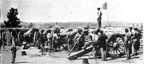 When finished, the chain of breastworks and artillery emplacements around Petersburg was 10 miles long, beginning and ending on the Appomattox River and protecting all but the northern approaches to the city. The 10 55 artillery batteries were consecutively numbered from east to west. Although natural terrain features were utilized whenever possible, some glaring weaknesses existed, such as the deep ravine between Batteries 7 and 8, which could provide a means of penetration by an attacking force. The very length and size of the fortifications proved to be a disadvantage. It meant that a larger number of troops would be necessary to defend the line than General Beauregard, charged with this heavy responsibility, had present for duty. Col. Alfred Roman, an aide-de-camp to Beauregard, estimated that the long “Dimmock Line” would require more than 10 times as many men to defend it as were available.