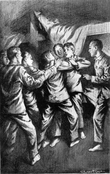 “Oh, my hypnotic eye. Just told one of the cooks I had to have something if they didn’t want the captain to read the service for burial at sea. And the cook allowed he didn’t want that to happen so soon after we’d got started. This is the result,” and Bob began munching on his share of the auxiliary rations, an example followed by Ned and Jerry.