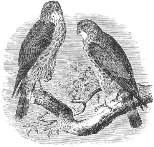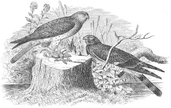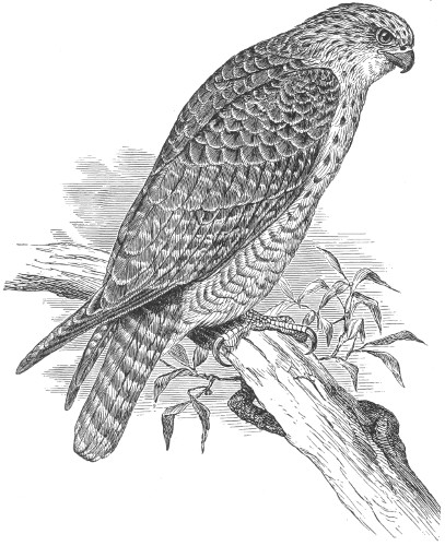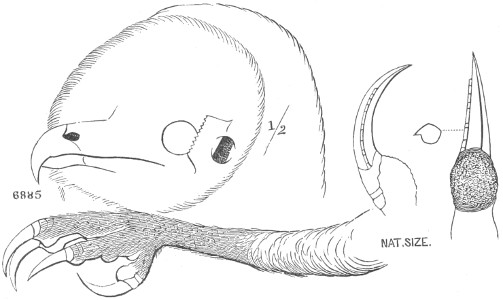 The birds of prey—named Accipitres by some authors, and Raptores or Rapaces by others, and very appropriately designated as the Ætomorphæ by Professor Huxley—form one of the most strongly characterized and sharply limited of the higher divisions of the Class of Birds. It is only recently, however, that their place in a systematic classification and the proper number and relation of their subdivisions have been properly understood. Professor Huxley’s views will probably form the basis for a permanent classification, as they certainly point the way to one eminently natural. In his important paper entitled “On the Classification of Birds, and on the Taxonomic Value of the Modifications of certain Cranial Bones observable in that Class,”2 this gentleman has dealt concisely upon the affinities of the order Raptores, and the distinguishing features of its subdivisions. In the following diagnoses the osteological characters are mainly borrowed from Professor Huxley’s work referred to. Nitzsch’s “Pterylography”3 supplies such characters as are afforded by the plumage, most of which confirm the arrangement based upon the osteological structure; while important suggestions have been derived from McGillivray’s “History of British Birds.”4 The Monographs of the Strigidæ and Falconidæ, by Dr. J. J. Kaup,5 contain much valuable information, and were they not disfigured by a very eccentric system of arrangement they would approach nearer to a natural classification of the subfamilies, genera, and subgenera, than any arrangement of the lesser groups which I have yet seen.