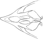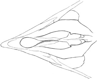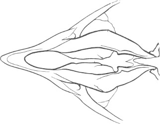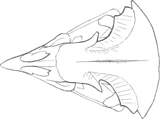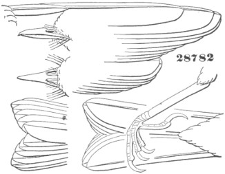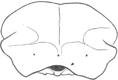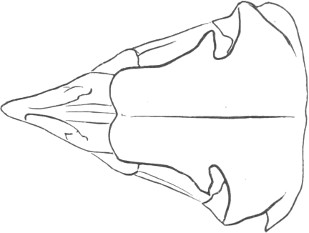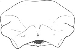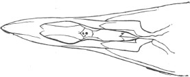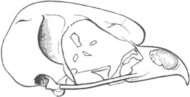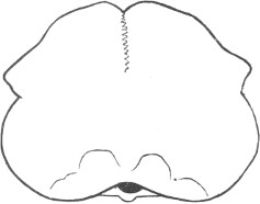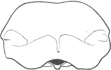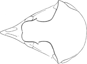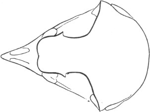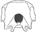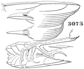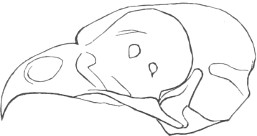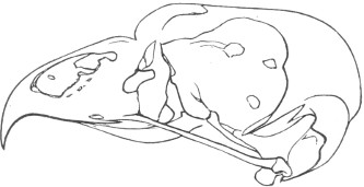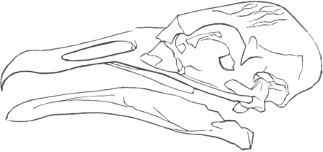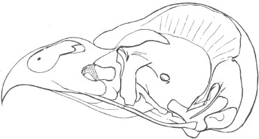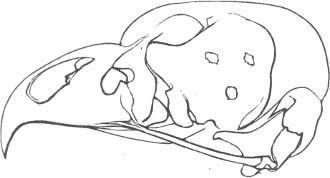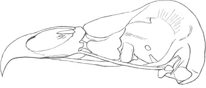 They have never yet been satisfactorily classified, and all the arrangements which have been either proposed or adopted are refuted by the facts developed upon a close study into the true relationship of the many genera. The divisions of “Night Owls,” “Day Owls,” “Horned Owls,” etc., are purely artificial. This family is much more homogeneous than that of the Falconidæ, since none of the many genera which I have examined seem to depart in their structure from the model of a single subfamily, though a few of them are somewhat aberrant as regards peculiarities in the detail of external form, or, less often, to a slight extent, in their osteological characters, though I have examined critically only the American and European species; and there may be some Asiatic, African, or Australian genera which depart so far from the normal standard of structure as to necessitate a modification of this view. In the structure of the sternum there is scarcely the least noticeable deviation in any genus7 from the typical form. The appreciable differences appear to be only of generic value, such as a different proportionate length of the coracoid bones and the sternum, and width of the sternum in proportion to its length, or the height of its keel. The crania present a greater range of variation, and, if closely studied, may afford a clew to a more natural arrangement than the one which is here presented. The chief differences in the skulls of different genera consist in the degree of pneumaticity of the bones, in the form of the auricular bones, the comparative length and breadth of the palatines, and very great contrasts in the contour. As a rule, we find that those skulls which have the greatest pneumaticity (e.g. Strix and Otus) are most depressed anteriorly, have the orbital septum thicker, the palatines longer and narrower, and a deeper longitudinal median valley on the superior surface, and vice versa.