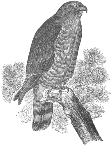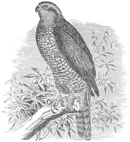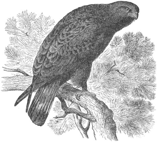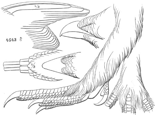 As regards the comparative number of species of this order in the two continents, the Old World is considerably ahead of the New World, which might be expected from its far greater land area. 581 species are given in Gray’s Hand List,6 of which certainly not more than 500, probably not more than 450, are valid species, the others ranking as geographical races, or are synonymous with others; of this number about 350 nominal species are accredited to the Old World. America, however, possesses the greatest variety of forms, and the great bulk of the Old World Raptorial fauna is made up chiefly by a large array of species of a few genera which are represented in America by but one or two, or at most half a dozen, species. The genera Aquila, Spizætus, Accipiter, Haliætus, Falco, Circus, Athene, Strix, and Buteo, are striking examples. As regards the number of peculiar forms, America is considerably ahead.