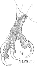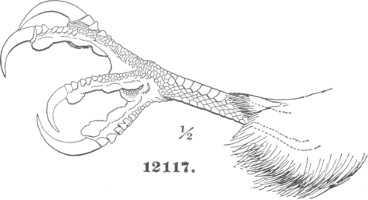 Common Characters. Bill hooked, the upper mandible furnished at the base with a soft skin, or “cere,” in which the nostrils are situated. Toes, three before and one behind. Raptores.