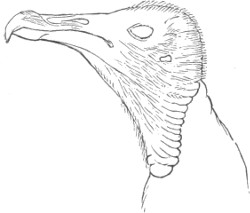 Cathartidæ. Eyes lateral; whole head naked. Outer toe not reversible; claws slightly curved, blunt. The Vultures.