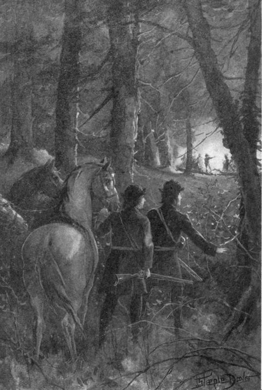 Deerfoot was dressed as he has been before described, but he carried a long, heavy blanket that was strapped to the back of his horse and served in lieu of a saddle. The powder horn and bullet pouch suspended from his neck were as full as they could carry. He looked so graceful on his animal that many expressions of admiration were heard from the people of Woodvale who had gathered to see the start. Deerfoot did not seem to hear any of the compliments, though some were addressed directly to him. He was never pleased with anything of that nature.