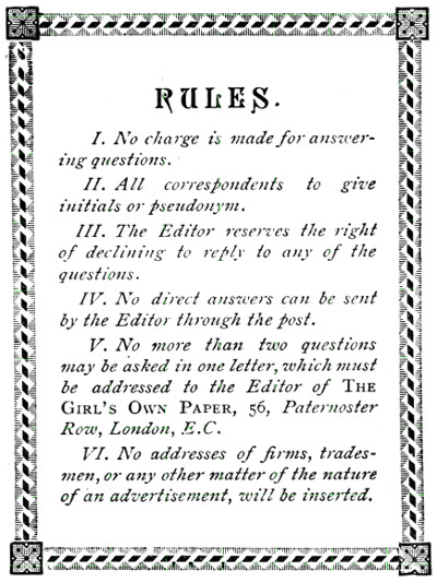 THE GIRL’S OWN QUESTIONS AND ANSWERS.