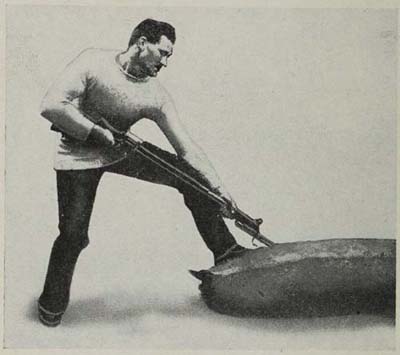 1. Rifle drawn back before delivering the thrust.