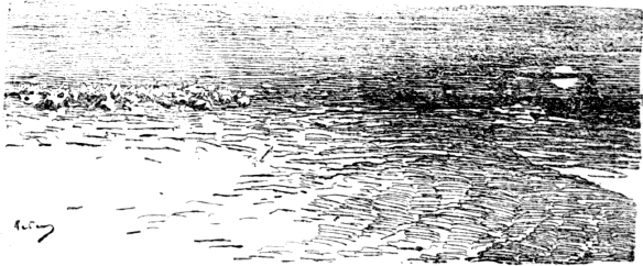 A tulkok szomorúan állongtak gyökig legelt szigetek szélein, s mit máskor nem, érzékeny szemet emeltek az égre, tán egy titkos ösztön elősejtésével, míg a rezgő víz eltorzítá nyurgult árnyaikon a nem őket illető arczkifejezést.
