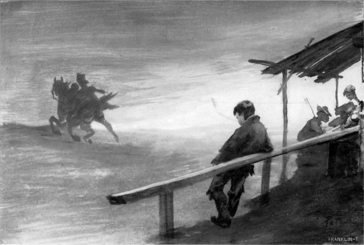 Túl a rónát lepő öntéseken angol ló látszik nyargalni. Hátán karcsú lovagot repít, kinek körrajzát összeolvasztja a távolság.