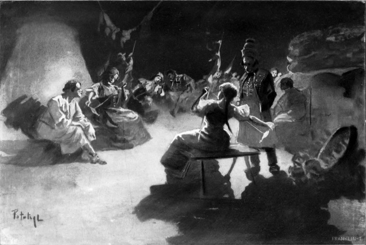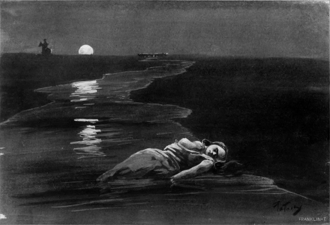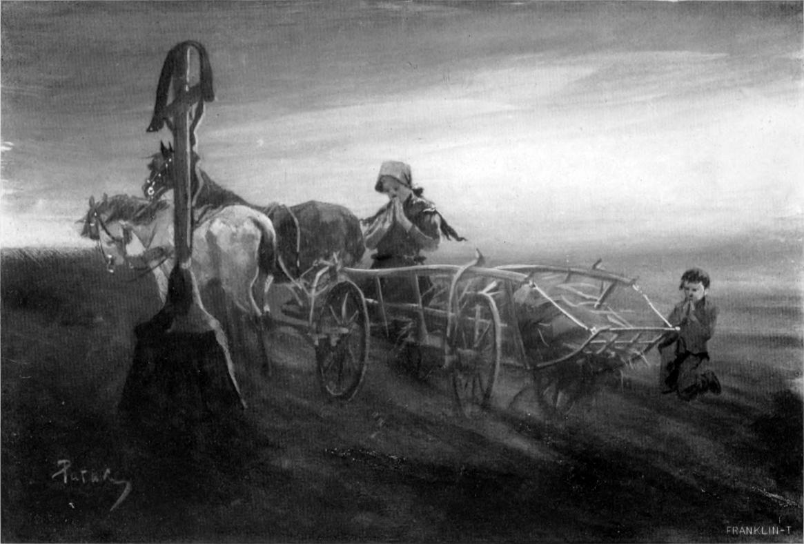 A parasztnő lesimítá a vérében festett hideg vízgyöngyöket, s törlő kezeiből kimerüle képén a nyomorrajz, melynek színeit eddig könyű, vérveríték, s a csapkodó zápor kivenni nem hagyák.
