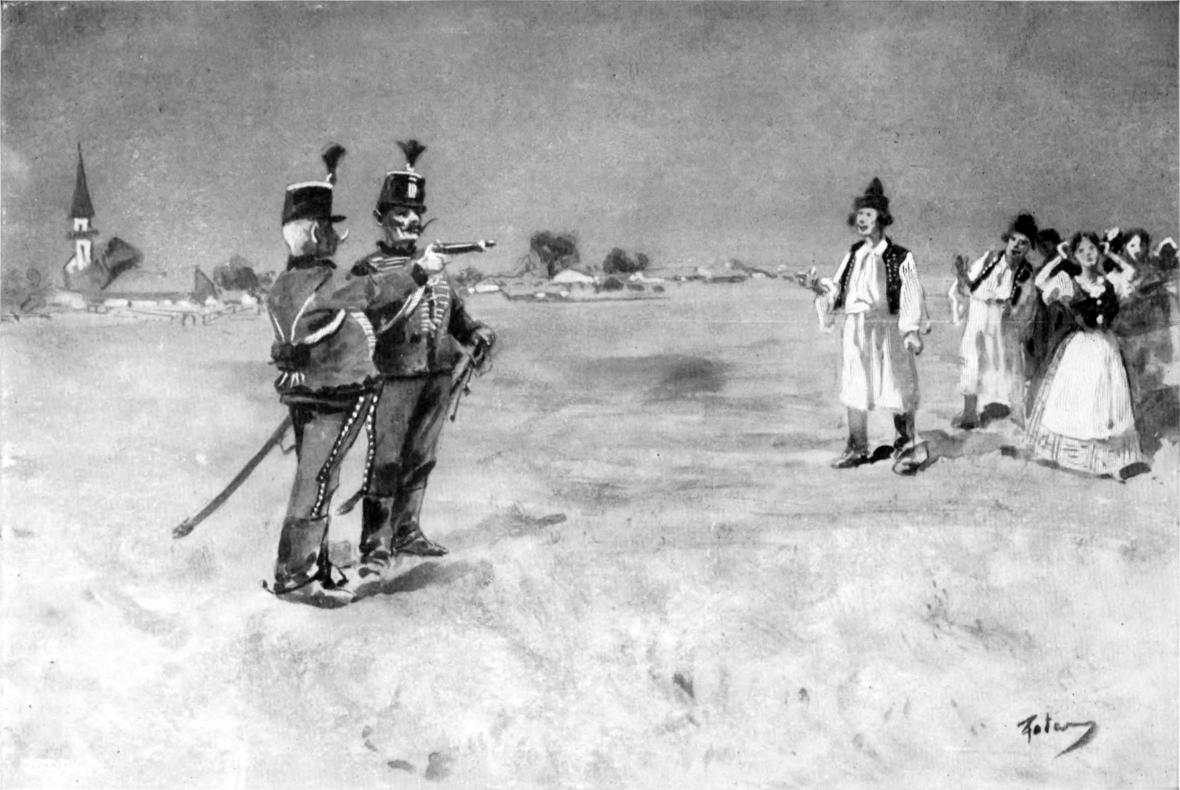 – Jól van fiam Sára, no hát haza viszlek, csak hágj be ebbe a vizi tekenőbe, s igyál egyet az egészségemért, ott a kulacs a vályu farába, csak ne sokat egyszerre, mert nem lőre… Ej ej, csak már mondtad volna, hogy igyen találkozunk, folytatá tréfásan a vén csikós, szűröm vagy subámat előhozám vala… Fázol ugy-e kis patyolatszuka? ne félj, befűt husz korty diószegi. De úgy látom, Miska reszket az öledben? hja! bábátok sohsem füröszt olyan hidegben mint a jégeső. Kutya baj, majd ha lovat őriz, az orra is befagy, mégis szuszogni kell. Dugd be fiad abba a száraz tarisznyába, vágj egy karé kenyeret, ha éhezel, s van ott egy kis borjúpecsenye is.