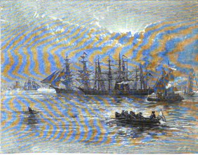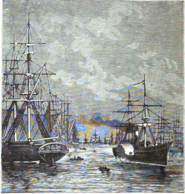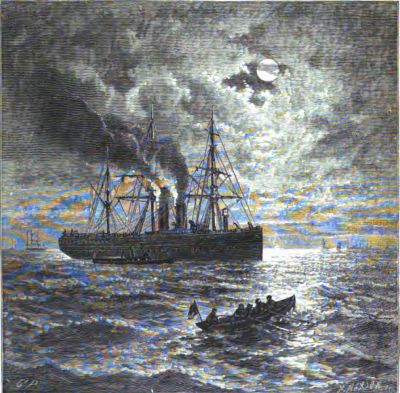 small boat to the great steamer that lay smoking in the harbor. The boat