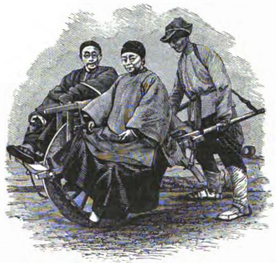 The great steamer ploughed steadily forward; and as she passed Kellet's Island, which is a fortified rock near the Ly-ee-moon, she turned gracefully, and headed straight for her anchorage. Our friends watched her till she came to her resting-place, and her engines had ceased working; then they said good-bye to the signal-station, and proceeded to the sedan-chairs which were waiting for them. The chair-coolies had also seen the steamer, and, as they were anxious to reach the city before the passengers could come ashore, they made the best possible time on their way down the mountain. They ran rather than walked, and two or three times the boys narrowly escaped a fall in the sudden bends of the zigzag road.