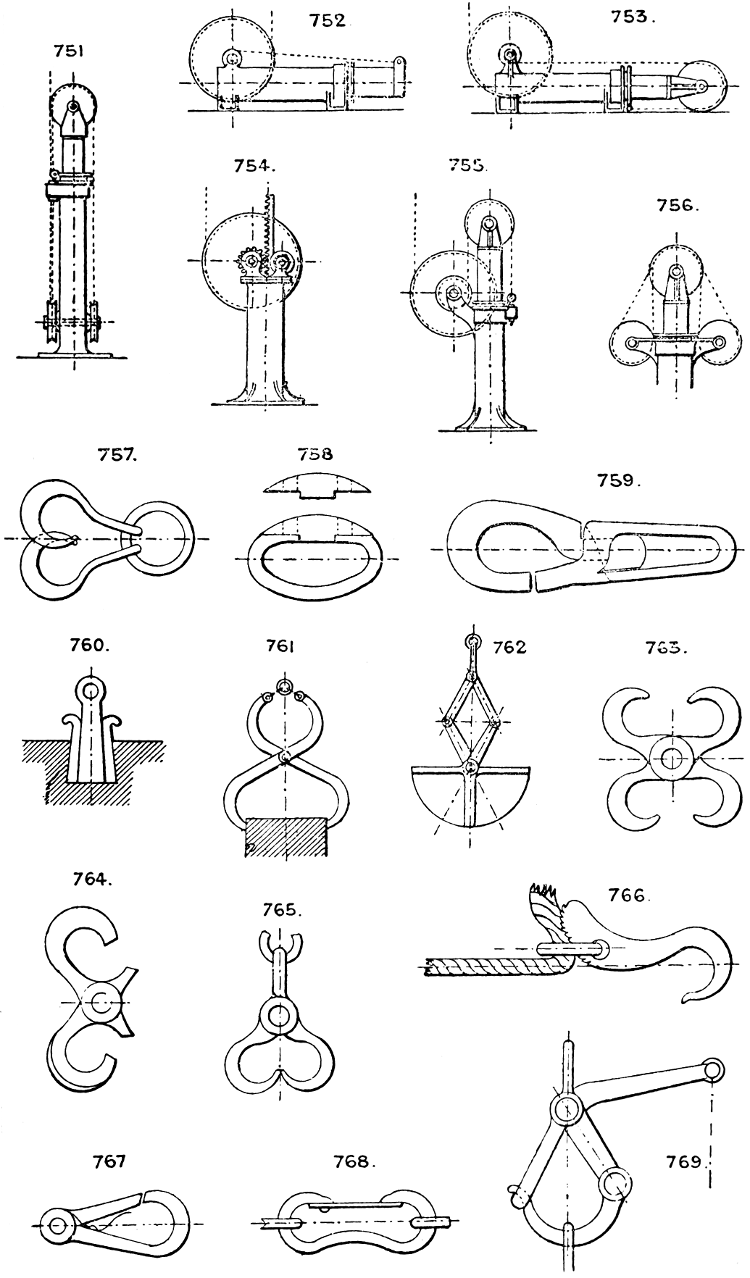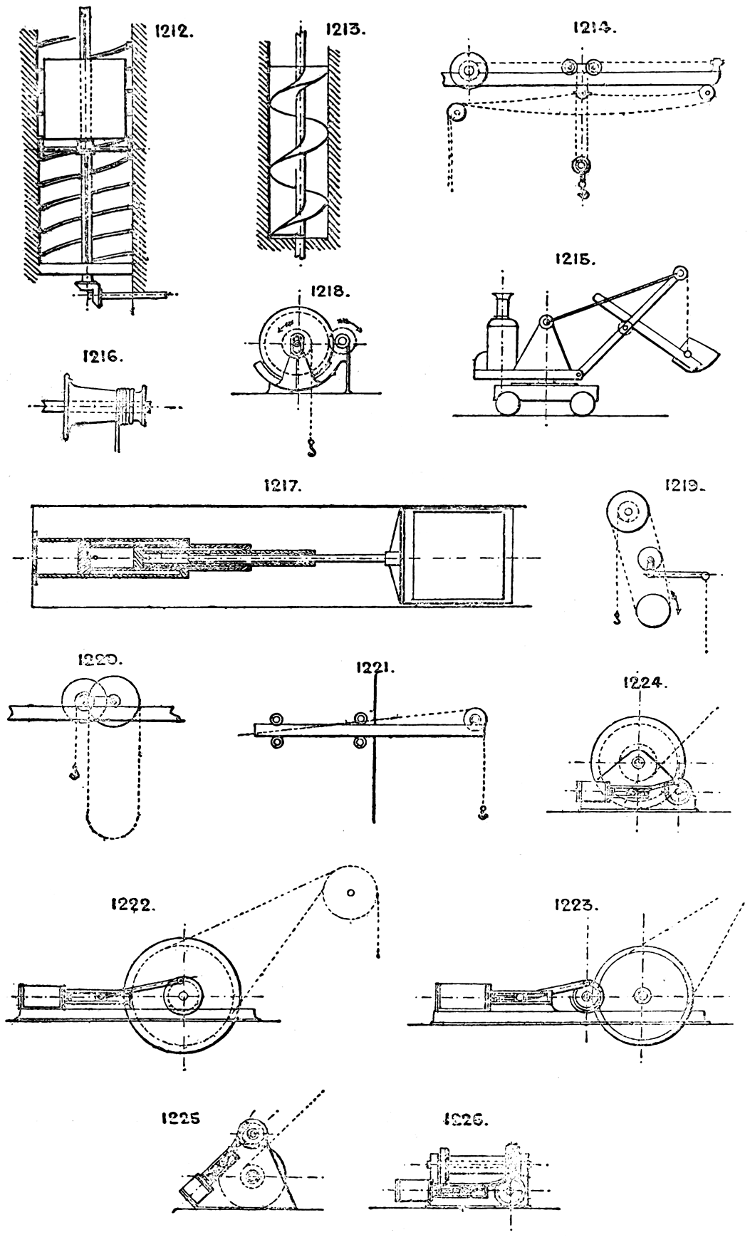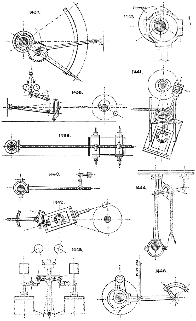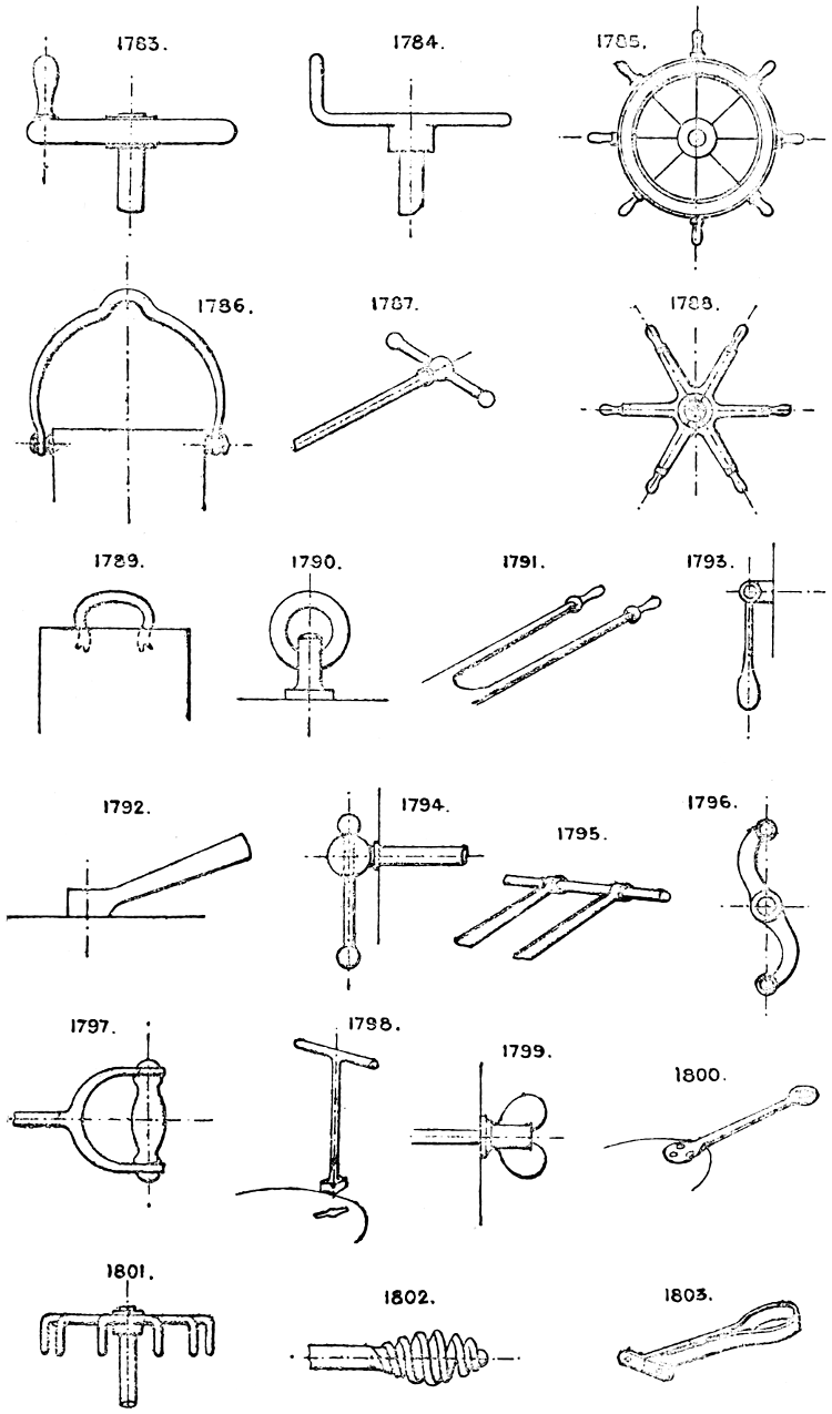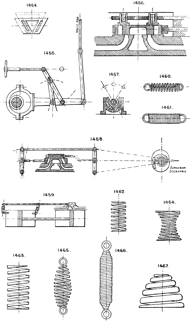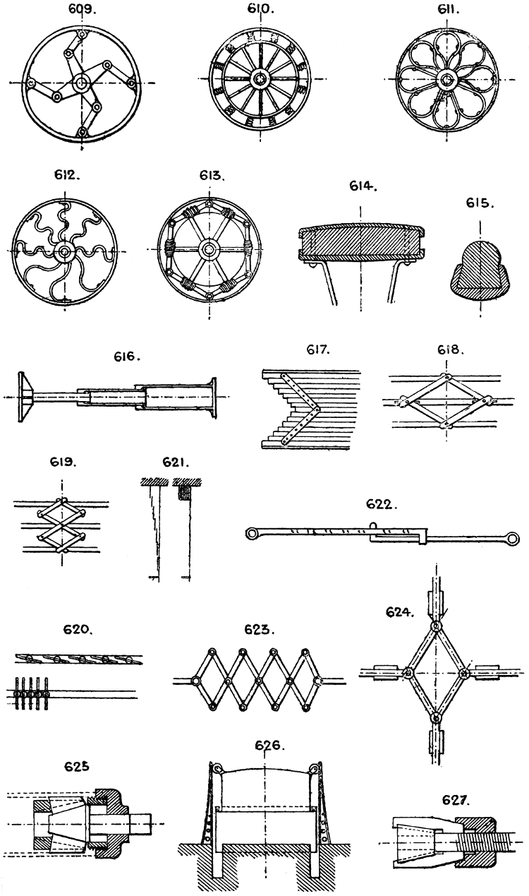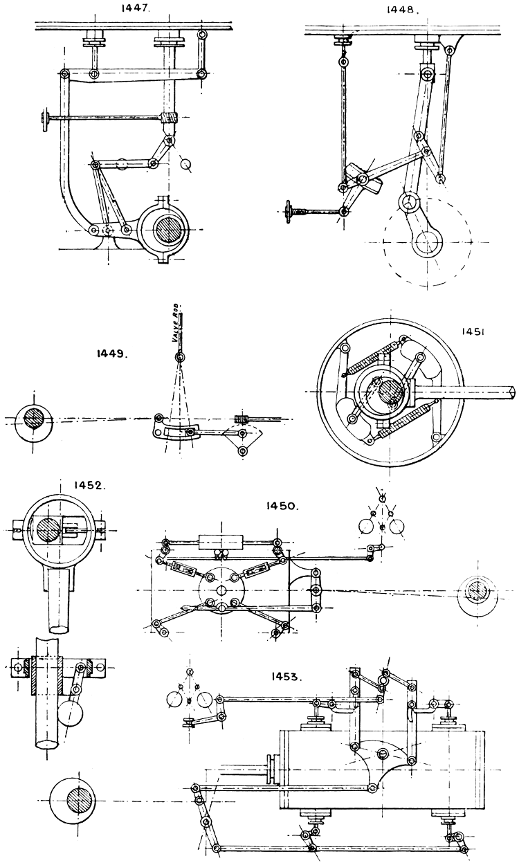 In the course of twenty-five years of such experience, I have found the want of such a volume as the present, and endeavoured to supply the deficiency in my own practice by private notes and sketches, gathered promiscuously, until the difficulty of selection and arrangement became so apparent that I began to classify them, as they exist in the following pages. A few weeks of unusual leisure have enabled me to complete this work and amplify it by numerous additions, and it is now presented in the hope that it will be found of equal service to others engaged in the head-splitting, exhausting work of scheming and devising machinery, than which I can conceive of no head-work more wearing and anxious, Several valuable works have already[vi] found numerous users, and there is no lack of admirable collections of memoranda, rules, and data for designing and proportioning the various constructive details of machinery; but, as far as I am aware, there is no work in existence which aims at the same purpose as is attempted in the following pages, viz. to provide side by side suggestive sketches of the various methods in use for accomplishing any particular mechanical movement or work, in a form easily referred to, and devoid of needless detail and elaboration. A sketch, properly executed, is—to a practical man—worth a folio of description; and it is to such that these pages are addressed. For the same reason it has been deemed undesirable to add to the various sketches any rules or tables relating to strengths or dimensions, which may be found in numerous well-known volumes.