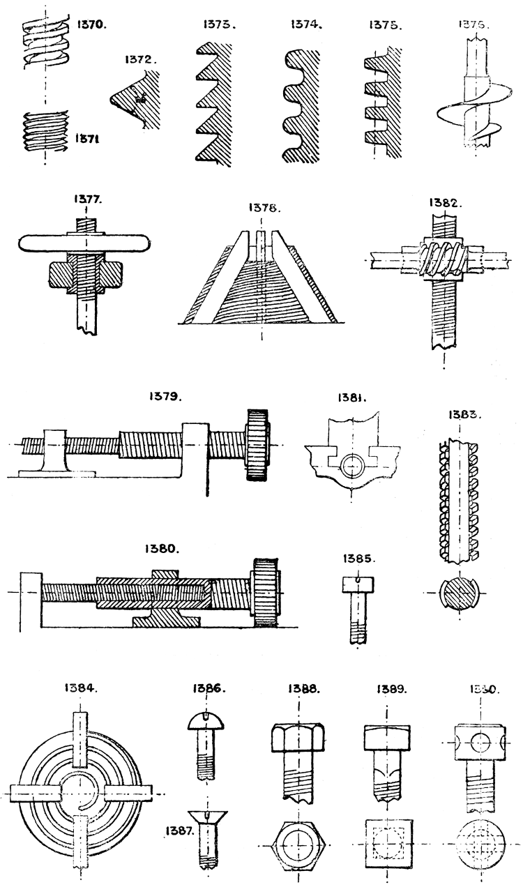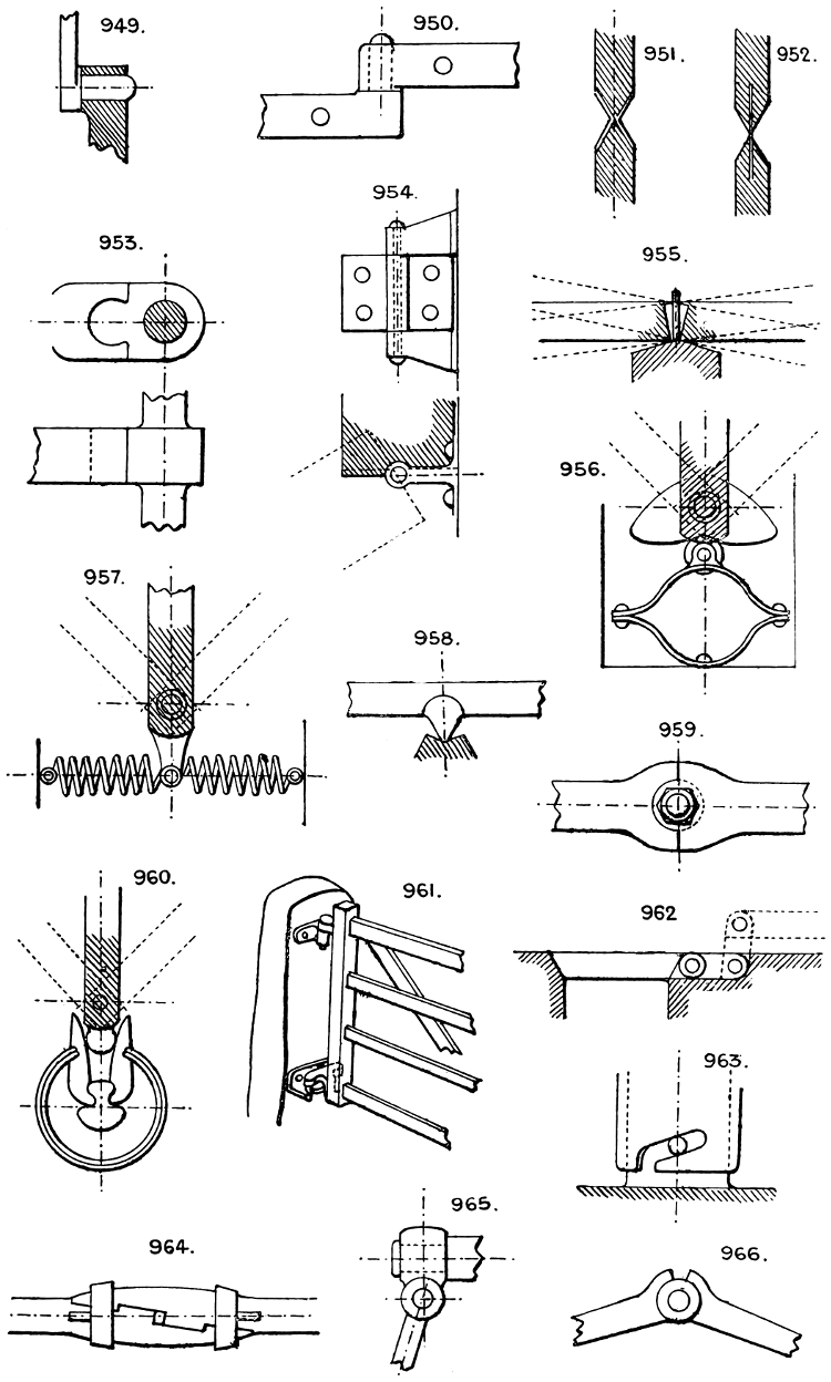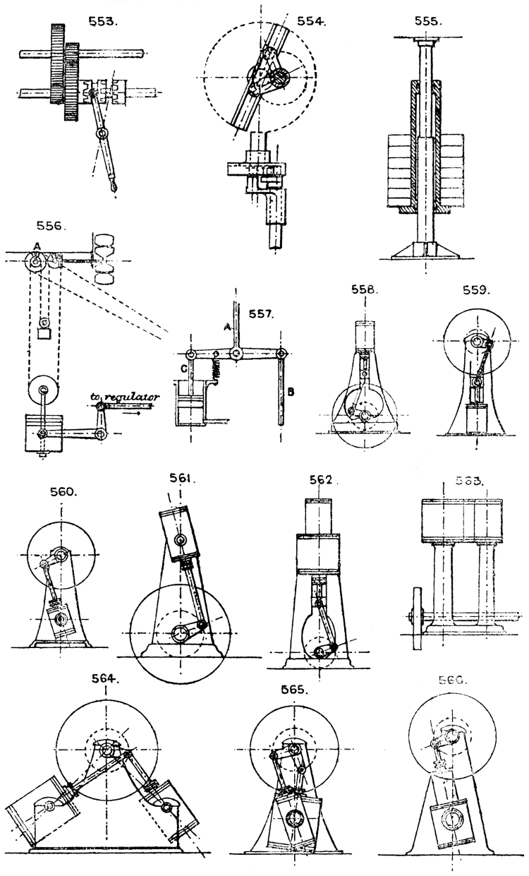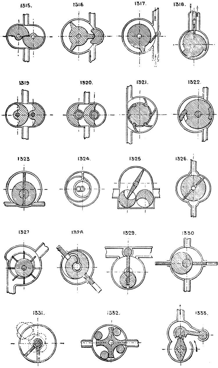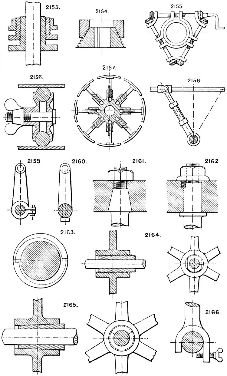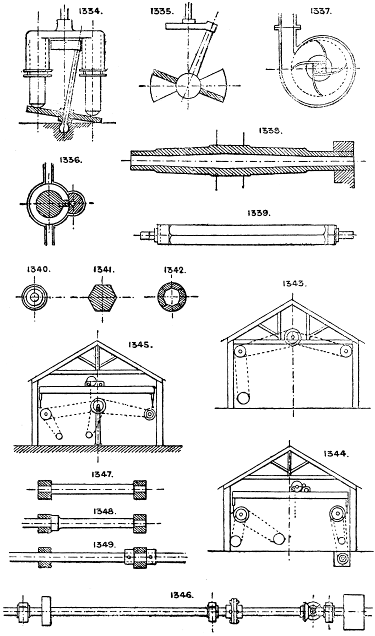In the course of twenty-five years of such experience, I have found the want of such a volume as the present, and endeavoured to supply the deficiency in my own practice by private notes and sketches, gathered promiscuously, until the difficulty of selection and arrangement became so apparent that I began to classify them, as they exist in the following pages. A few weeks of unusual leisure have enabled me to complete this work and amplify it by numerous additions, and it is now presented in the hope that it will be found of equal service to others engaged in the head-splitting, exhausting work of scheming and devising machinery, than which I can conceive of no head-work more wearing and anxious, Several valuable works have already[vi] found numerous users, and there is no lack of admirable collections of memoranda, rules, and data for designing and proportioning the various constructive details of machinery; but, as far as I am aware, there is no work in existence which aims at the same purpose as is attempted in the following pages, viz. to provide side by side suggestive sketches of the various methods in use for accomplishing any particular mechanical movement or work, in a form easily referred to, and devoid of needless detail and elaboration. A sketch, properly executed, is—to a practical man—worth a folio of description; and it is to such that these pages are addressed. For the same reason it has been deemed undesirable to add to the various sketches any rules or tables relating to strengths or dimensions, which may be found in numerous well-known volumes.