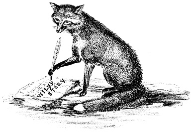 I am descended from the ancient family of the Wilys, and was born on the 25th day of March, in the year ——. Within three or four weeks from that day of the year every fox of us in this country is probably brought forth; and it seems especially designed that the female should thus produce her only litter in the year at a season when our favourite food, young rabbits, are most abundant. The spot in which I first drew breath was a breeding-earth, carefully chosen by my mother, in a well-known covert, called Park Coppice, situated in the centre of the Hampshire Hunt. It was not until the tenth day after my birth that I first saw light, or acquired sufficient 4 strength to crawl with safety to any little distance round our nest. Had I earlier possessed the use of sight, I might have strayed beyond my warm shelter, and for want of sufficient strength to return to it, have perished with cold. Thus Nature goes on to care for us. I had two brothers and two sisters, and we all throve and grew rapidly with the nourishment of our mother’s milk alone, until we were six weeks old, when she began to supply us with other food, such as rabbits, and rats and mice, which she tore to pieces and divided amongst us in equal shares, not however so much to our satisfaction as to prevent our snarling and quarrelling with each other thus early over our meals. That part of the earth where we lodged was between two and three feet square, with several passages just large enough for our mother to crawl along; several of these crossed each other, and of two that terminated outwards one only was used by our mother, who stopped up the other for times of emergency. In these several passages we daily amused ourselves with chasing each other round and round. On one occasion we were interrupted in the midst of our gambols by the sudden entrance of our mother, who seized us with her sharp teeth, and carried us to the back of the earth. It seemed that she had 5 been watching outside, for immediately after this we were alarmed by a sound hitherto unheard by us. It was the voice of a man crying out, “Eloo in, Viper! fetch ’em out! hie in there, hie in!” The light was instantly shut out by the intrusion of a dog in a low and narrow part of the passage, which compelled him to crawl along with his head to the bottom. Our mother waited for him, where she had the advantage of higher space, and as he approached with his head thus low, she fixed her teeth across the upper part of his nose and pinned him to the bottom of the passage, where she held him so that he could not bite her, which he would have done had she attacked him after he had got beyond the lower part, when he might have raised his head up.[1] Whilst bleeding and howling with agony, he drew her backwards to the opening, where she let him go. It was in vain that the man tried to make him go in again, and so he left the 6 place, declaring his conviction that there were cubs within, and that he would have them out another day. He was, however, disappointed, for our mother that night took us one by one to a large earth in a neighbouring wood. We were now two months old, and ceased to draw our mother’s milk, which we no longer needed, as we were able to kill a rabbit or pluck the feathers of a fowl when she brought it to us, as well as she. Some of these feathers, which in our frolics we had carried to the mouth of the earth, once betrayed us to a couple of poachers, who had been lurking about the wood, and who noticing them, procured a long stick and thrust it into the earth, nearly breaking the ribs of one of my brothers. When they pulled it out again, they found the end of it covered with his hairs. This satisfied them, and leaving us scrambling and huddling together up to the back of the earth, they went away, resolving to come back next day with tools to unearth us, and expecting, as they said, to sell us for half-a-guinea apiece. 7