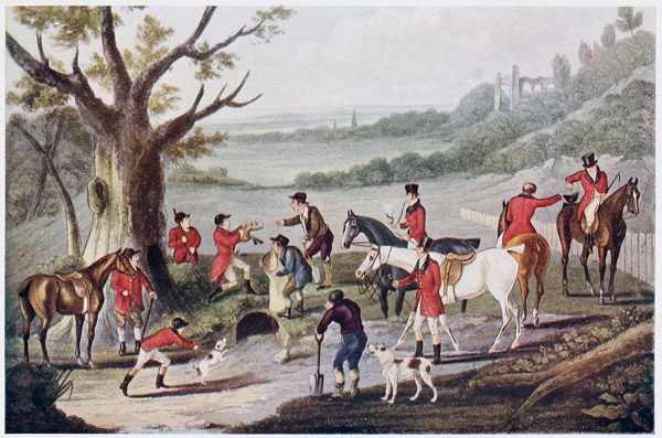 The story of each Fox is full of interest, and it is not possible within the limits of this introduction to explore each situation. There are, however, one or two remarks in “Pytchly’s Story” which seem to extract the essence of the successful pursuit of the Fox. Now this essence is contained in the physiological truth that the vast majority of good runs are made, and stout Foxes killed, by the Hounds following the vii line, first by their sense of smell, and secondly by their power to run fast enough and long enough to catch the Fox, provided he does not go to ground. Each moment the Hounds are not on the line is a moment wasted, which at a later stage in the run will probably develop into minutes, and ultimately spell defeat. Brilliant victories, and much galloping and jumping may be achieved by means of the Huntsman tearing off to a point without a scent, but ninety-nine times out of a hundred this kind of speculation ends in disaster. Mr. Smith contrives to criticize Mr. Osbaldiston’s Hounds through the mouthpiece of “Pytchly” for overrunning the scent “owing to their great courage, which, in breeding of them, seemed to have been more attended to than the nose”; and “Pytchly” goes on to say:—“Luckily for us (the Foxes) the hunters fell into the mistake of trying to make what they called a flying pack....” Such Hounds as would not go the pace without a good scent were always drafted, although, when there was a good scent, this sort could puzzle even the fast riders to keep with them. “Partly to this cause I attribute my having lived to my great age.” “Pytchly” goes on to say that he often saved his life by going to ground in a drain and the Hounds being carried past the drain by their own mettle, and by their being too hardly pressed by the horsemen. This good Fox also tells us that he saved his brush more than once by the whole establishment posting forward for a view on his entering a woodland in the course of a run, so much so that by this system men seemed to imagine that a Fox could be run down by fast riding, and that “whippers-in are nearly all that is wanted.” This practice, as well as the practice of giving up the hunted Fox and going to find another, was hailed by “Pytchly” as the means of his salvation. He describes his alarm when he heard Mr. Smith who was hunting his own Hounds, say to some gentleman who suggested that he should leave the cold scent, and find another Fox:—“I shall hunt this as long as a Hound will own the scent. We shall get up to him by and by and kill viii him too.” “Pytchly,” with his charmed life eluded on this occasion even the great Mr. Smith himself, by getting to ground and pushing past a fresh Fox who was lying comfortably in the earth, and who was no doubt dug out and eaten with “ten mile point honours.”