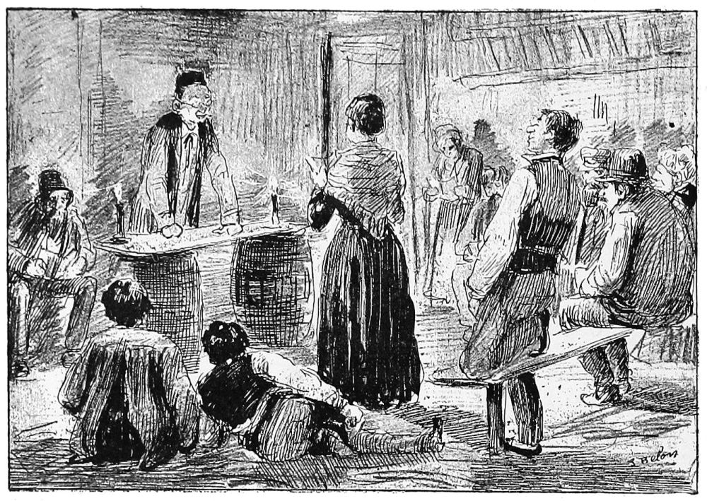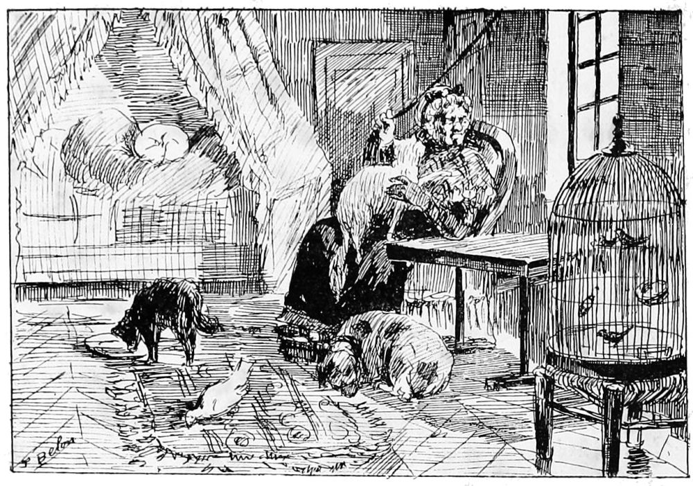 Mᵐᵉ Pierre n’était rien moins que la fameuse concierge de l’hôtel Colbert, rue du Croissant. Sa loge était surtout fréquentée par les ouvriers typographes du Siècle, du Charivari, etc., etc. Mᵐᵉ Pierre, ou plutôt la mère Pierre, comme on l’appelait généralement, avait été amenée, par la bonté et la sociabilité de son caractère, à faire un petit commerce de vin et d’aliments, où l’on était assuré de trouver à toute heure de la nuit soit une tranche de jambon, soit une salade d’œufs durs, soit le classique triangle de fromage de Brie. Quelquefois même, la mère Pierre gardait pour son Benjamin Privat un restant de ragoût ou de foie aux carottes, car la fascination de Privat s’exerçait même sur la mère Pierre; aussi trônait-il dans cette loge, et avait-il fini par y entraîner quelques écrivains, d’ailleurs assez faciles à entraîner, comme Émile de la Bédollière, Guichardet, Lherminier, Fernand Desnoyers, etc.