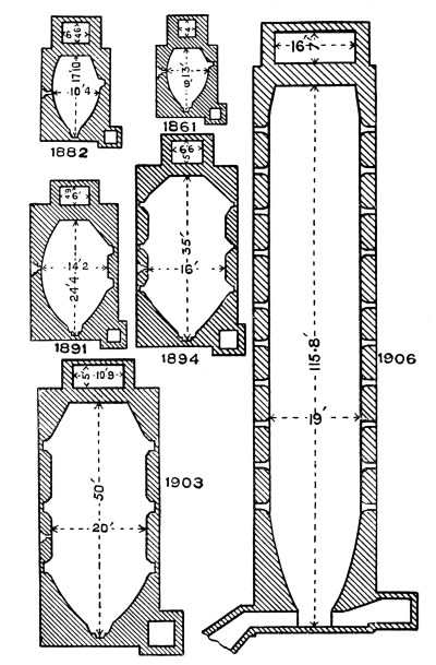 Blast-Furnace Practice:—Functions of the Furnace—Reduction Smelting—Oxidation in the Furnace—The Pyritic Principle—Features of Modern Working: Water-Jacketing, Increase in Furnace Size, External Settling—Constructional Details of the Furnace, |