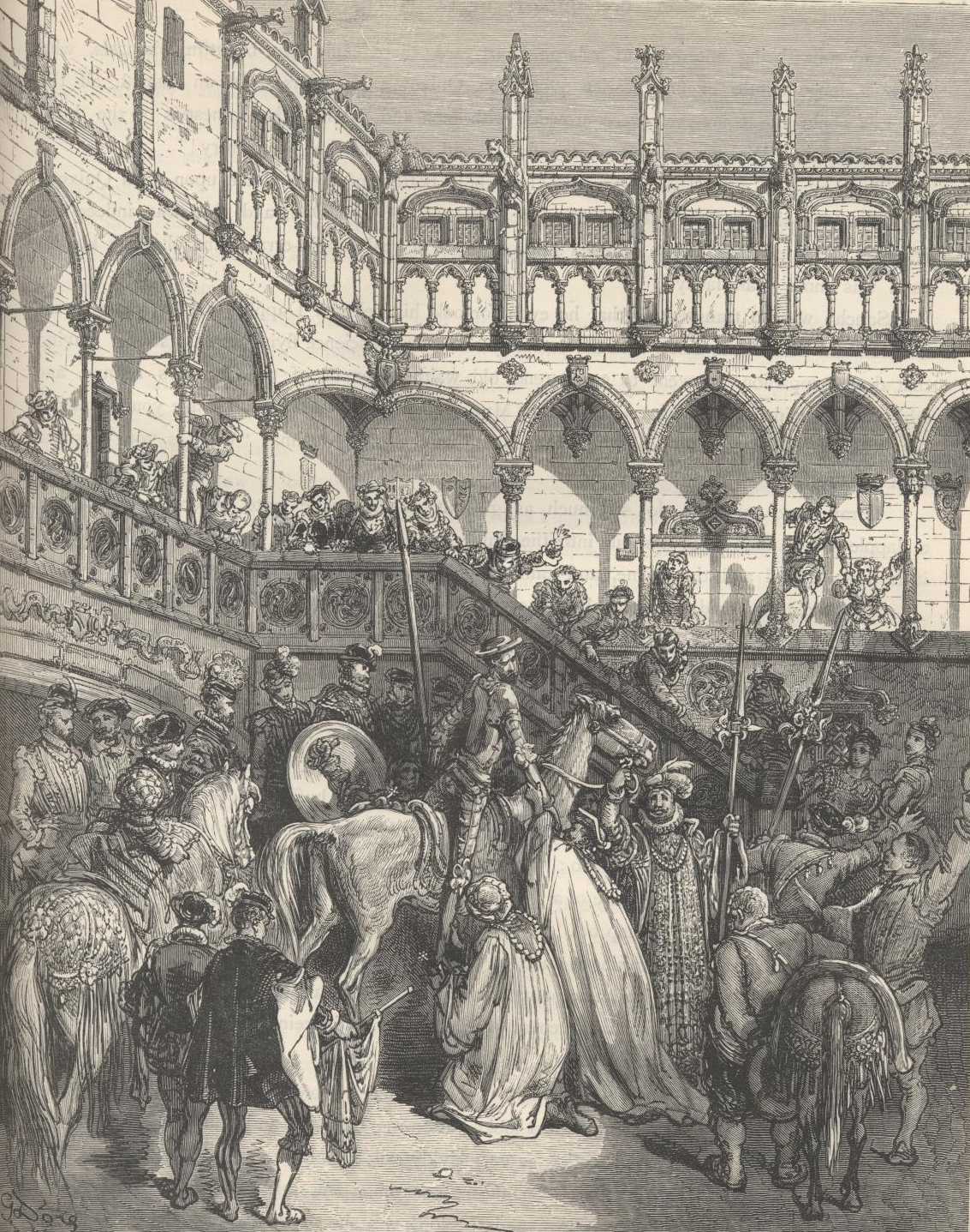 "He of the Lions be it," continued the duke; "I say, let Sir Knight of the Lions come to a castle of mine close by, where he shall be given that reception which is due to so exalted a personage, and which the duchess and I are wont to give to all knights-errant who come there."