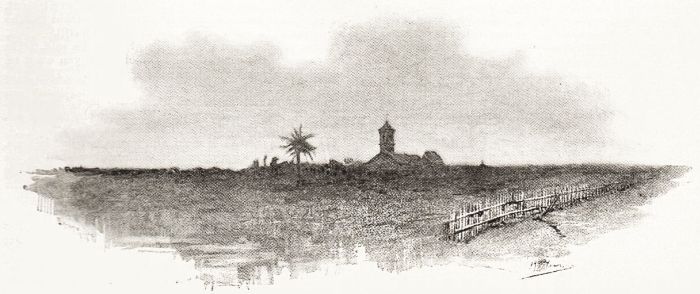 A long savanna spread before them. A scout urged his horse out upon the plain, and he was followed by another. The two galloped to the right and rose on a ridge overlooking a stretch of country beyond. There they paused; and as one, bending in his saddle, peered into the distance, the other shielded his eyes and looked too. Then they wheeled and rode up and down the ridge. Nothing! Nothing but cane-fields, palm-trees, and a tall chimney in the distance.