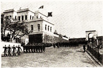 The rebel band advanced. Again the horsemen appeared at the top of the road—two, four, six, eight, dozens of them. In rapid succession they rode out from the gray walls and dark mango-trees. There was another crack of rifles and puffs of blue smoke.