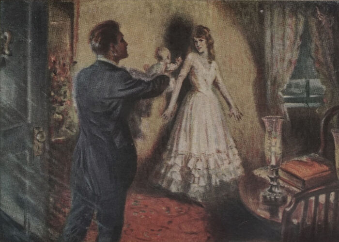 She stood a minute before the mirror, studying her pretty little face. She was nearly twenty years younger than her husband, an exacting woman, perfectly capable of muttering “prunes and prisms” by the hour for the shaping of her mouth as she moved about her occupation of being her husband’s wife, her daughter’s mother, her own social Influence. Elizabeth Spellman believed in Influence. It was her duty to set a shining example. She had no vision of a modest candle—when she let her light “so shine” she meant it to be a headlight, and of no mean proportions at that. As she patted her hair in place, set the bow at her throat with exact precision, she smiled with pleasure over the picture her mirror held facing her. But Elizabeth Spellman was a woman who firmly held duty above pleasure, or rather, who found her greatest pleasure in her personal conception of her duty; so she turned from the mirror, gathered up her belongings, and leaving everything in place, went hurriedly down the hall. She softly opened a white door and her eyes instantly sought a small bed, standing in a room made dainty with pale pinks and blues. She hurried to the bed, and bending, laid her hand upon the little girl sleeping there.