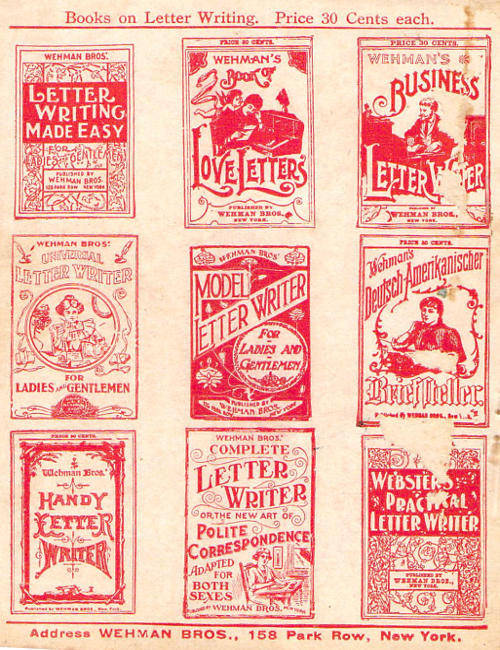 Address all orders to WEHMAN BROS., 158 Park Row, New York.