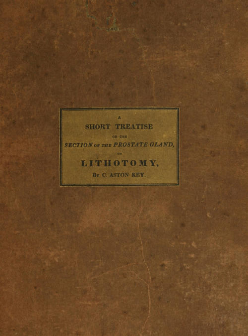 The Project Gutenberg EBook of A Short Treatise on the Section of the Prostate Gland in Lithotomy, by Charles Aston Key This eBook is for the use of anyone anywhere in the United States and most other parts of the world at no cost and with almost no restrictions whatsoever. You may copy it, give it away or re-use it under the terms of the Project Gutenberg License included with this eBook or online at www.gutenberg.org. If you are not located in the United States, you'll have to check the laws of the country where you are located before using this ebook. Title: A Short Treatise on the Section of the Prostate Gland in Lithotomy Author: Charles Aston Key Release Date: October 13, 2019 [EBook #60489] Language: English Character set encoding: UTF-8 *** START OF THIS PROJECT GUTENBERG EBOOK SHORT TREATISE--SECTION OF PROSTATE GLAND *** Produced by deaurider and the Online Distributed Proofreading Team at http://www.pgdp.net (This file was produced from images generously made available by The Internet Archive)