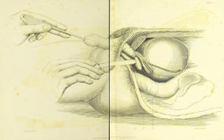 It should be borne in mind, that Cheselden never used the staff as a director in the manner it is used at the present day. His left hand being employed in holding the gut down, an assistant kept the instrument fixed, while Cheselden divided the parts upon the groove of the staff in withdrawing his knife.