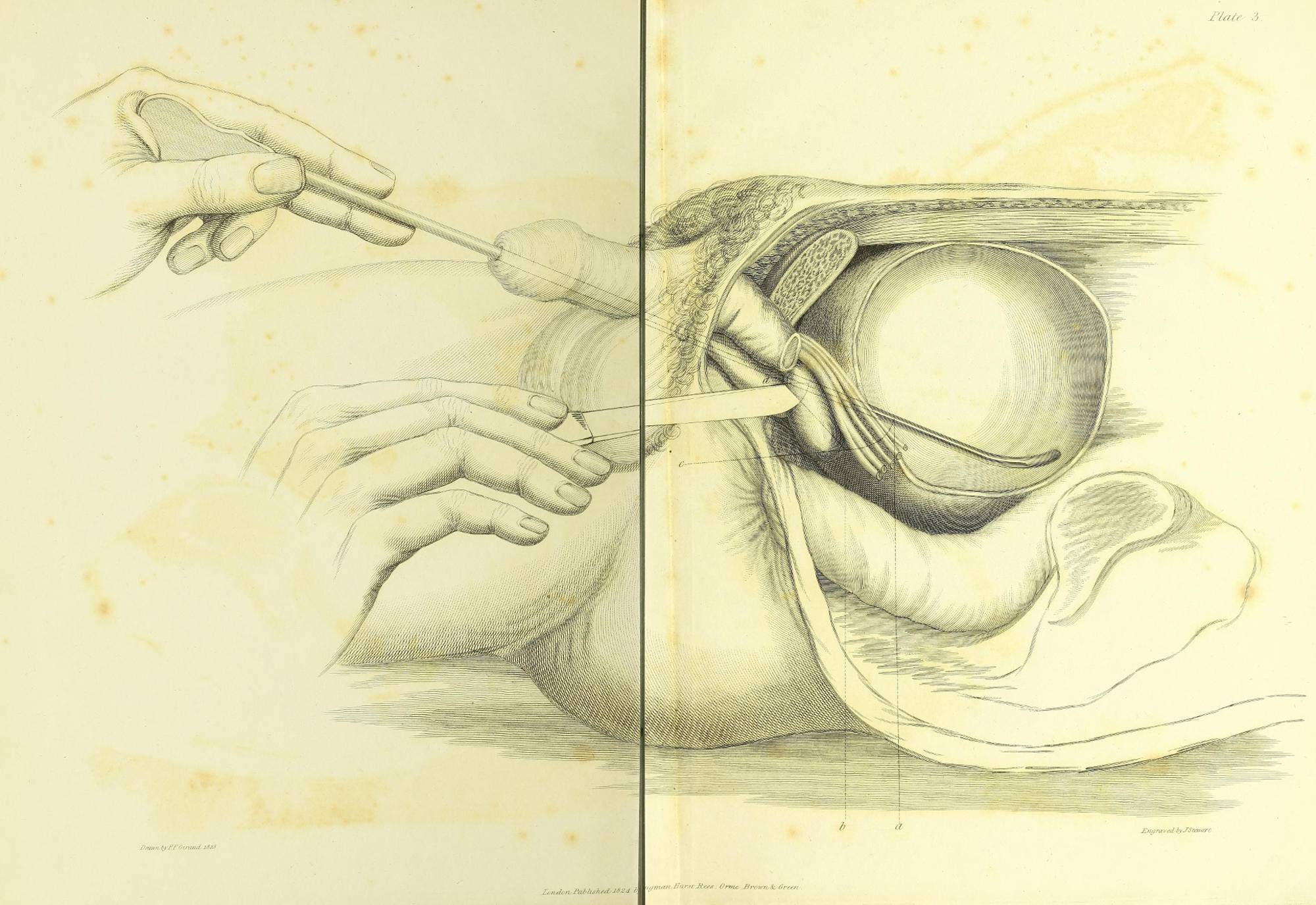 After the records recently laid before the public by two able and successful Lithotomists,[1] it may appear superfluous,[2] or even presumptuous in me, to clothe in the formal garb of a publication the observations which the following pages contain. To disarm the severity of the critic, however, and to invite those who shrink, and frequently with reason, at the idea of innovation on established practice, I may premise, that it is not intended to change in any one respect the principles of the lateral operation, but merely to suggest an easier mode of accomplishing the same object. Indeed, I trust I shall be able to shew, that the proposed method will enable the surgeon to adhere more closely to the operation as first proposed and practised by the great Cheselden.