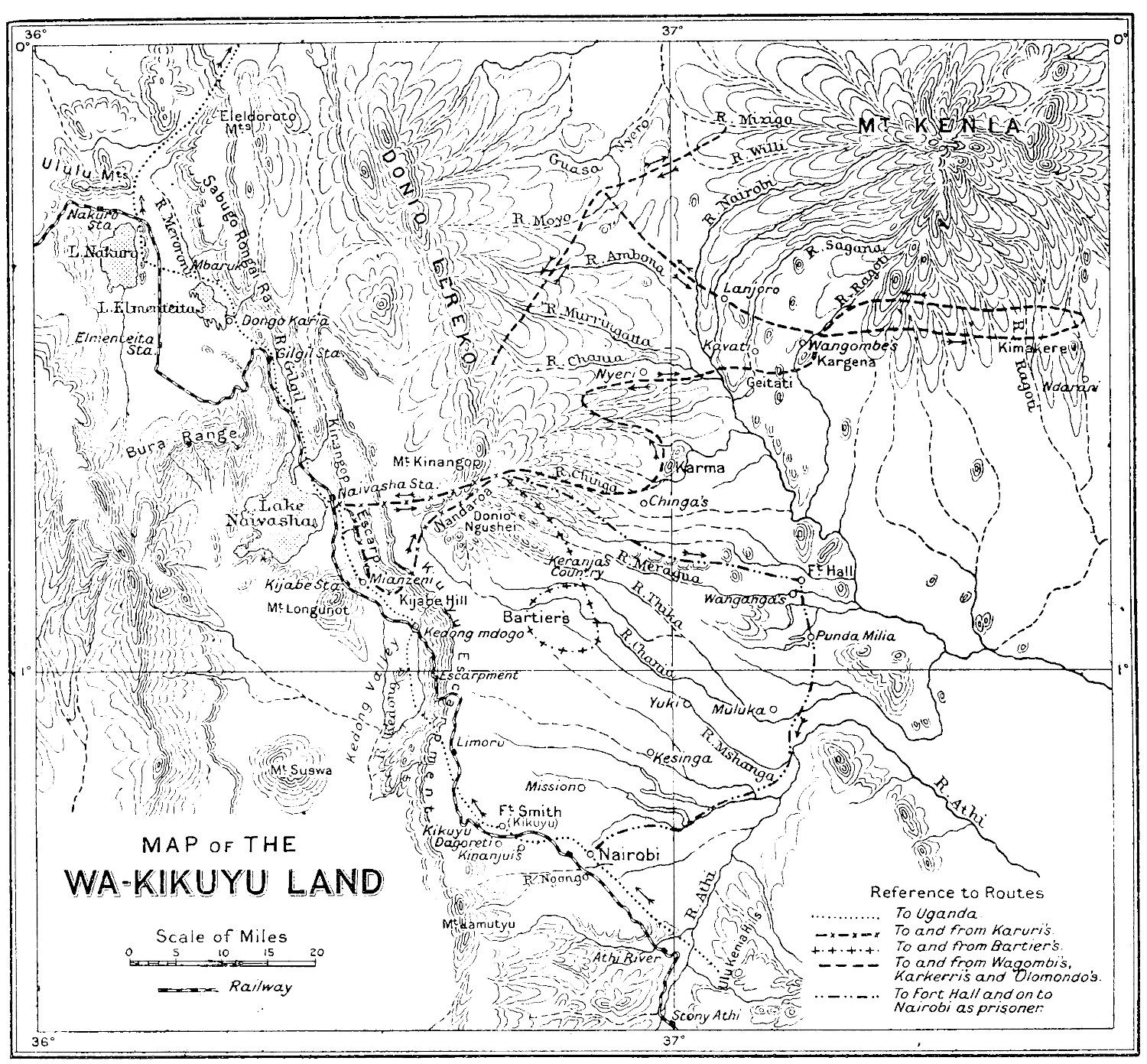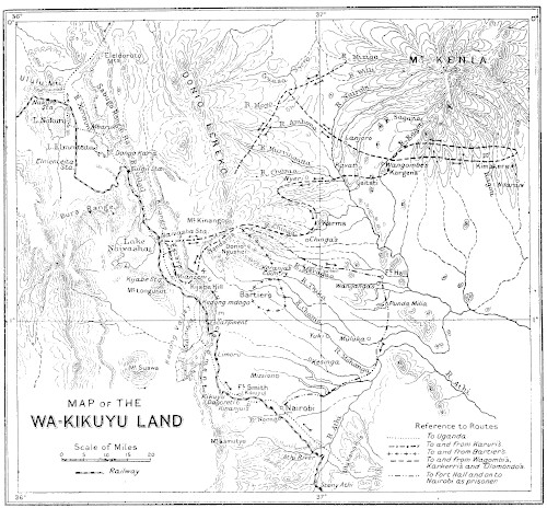 A map at the end of the text serves as a link to a larger version for closer inspection of details of the Wa-Kikuyu territory.