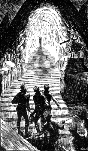 "N-no, Padre! Not stolen. I found it. A mine—" His breath was coming in tiny, tortured gasps; he spoke more swiftly as if aware that he must tell his secret ere silence claim him. "Danger ... on Titania! The caves ... natives ... and the furnace of flame ... beware!"
