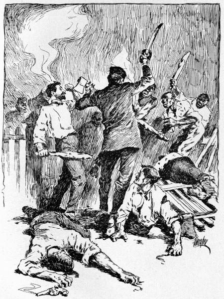 “Yes, I know and agree with our forefathers in all of that,” exclaimed the sun burned J. Dunlap with some show of impatience. “But while slavery was all wrong and equality before the law is absolutely right, still I have seen both in this country and in the West Indies such strange evidence of the inherent barbarism in the negro race that I am almost ready to paraphrase a[9] saying of Napoleon and declare, ‘Scratch one with negro blood in him and you find a barbarian.’”