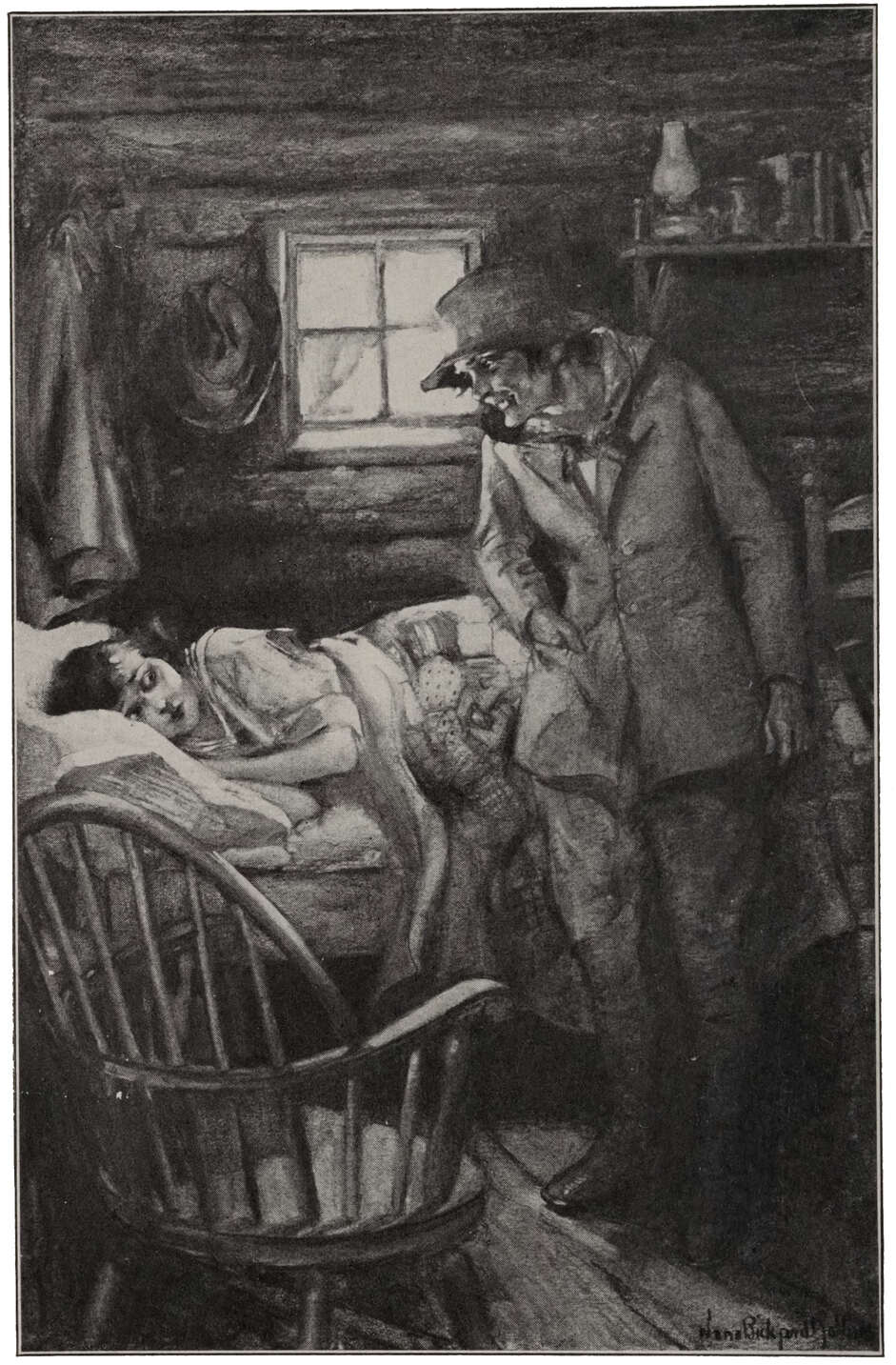 “Lorie me! Miss Una,” grunted an old mountaineer who at that moment came shuffling down a garden path, spade in hand and munching a dew-piece, a hunch of bread. “Lorie me! Now, what be you up for so ear-rly! It ben’t but—five—o’clock.” He pulled a timeworn old silver watch out of a side pocket.