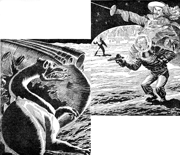 The Project Gutenberg EBook of Mr. Meek--Musketeer, by Clifford D. Simak This eBook is for the use of anyone anywhere in the United States and most other parts of the world at no cost and with almost no restrictions whatsoever. You may copy it, give it away or re-use it under the terms of the Project Gutenberg License included with this eBook or online at www.gutenberg.org. If you are not located in the United States, you'll have to check the laws of the country where you are located before using this ebook. Title: Mr. Meek--Musketeer Author: Clifford D. Simak Release Date: August 26, 2020 [EBook #63046] Language: English Character set encoding: ASCII *** START OF THIS PROJECT GUTENBERG EBOOK MR. MEEK--MUSKETEER *** Produced by Greg Weeks, Mary Meehan and the Online Distributed Proofreading Team at http://www.pgdp.net